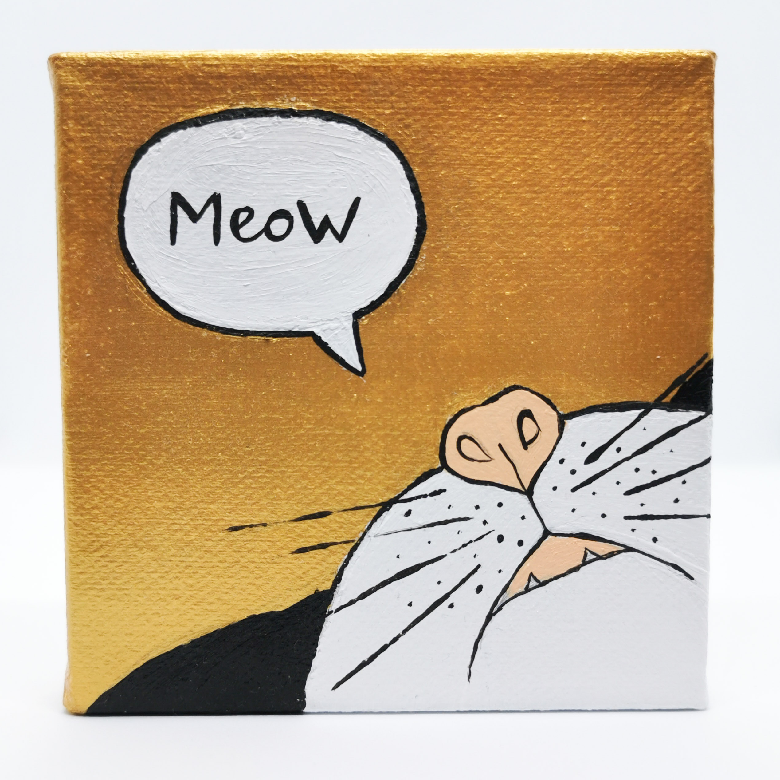 Half way through painting this cat I sent a picture of it to the groupchat and one of my friend immediately claimed it. The speech bubble was her idea and I loved it.